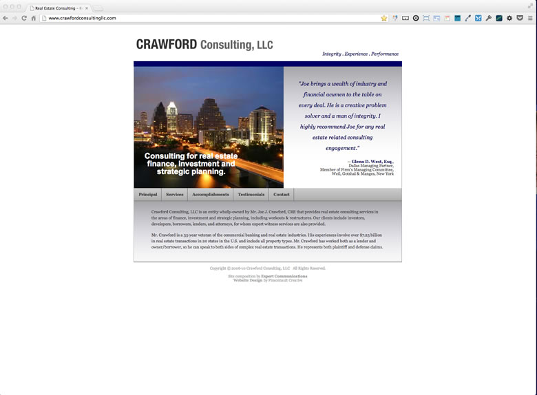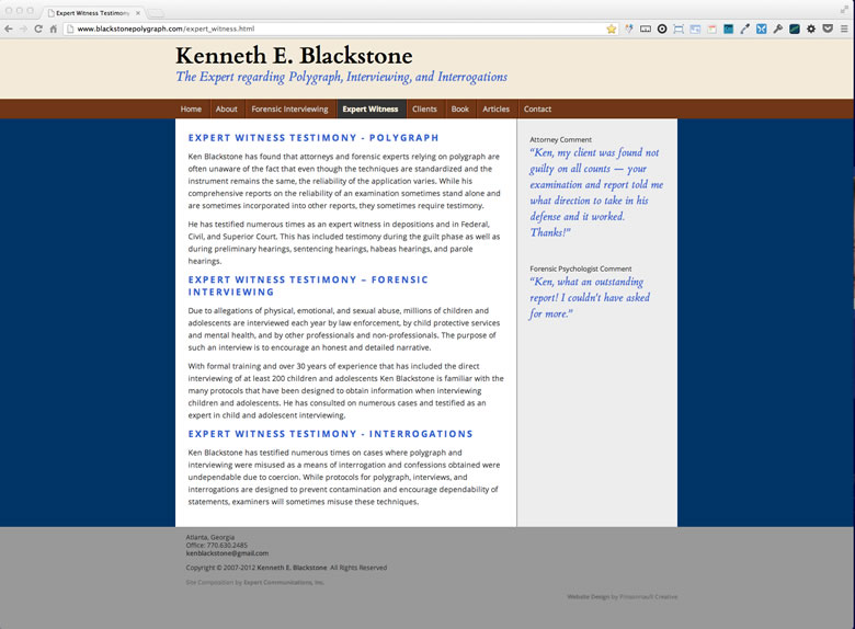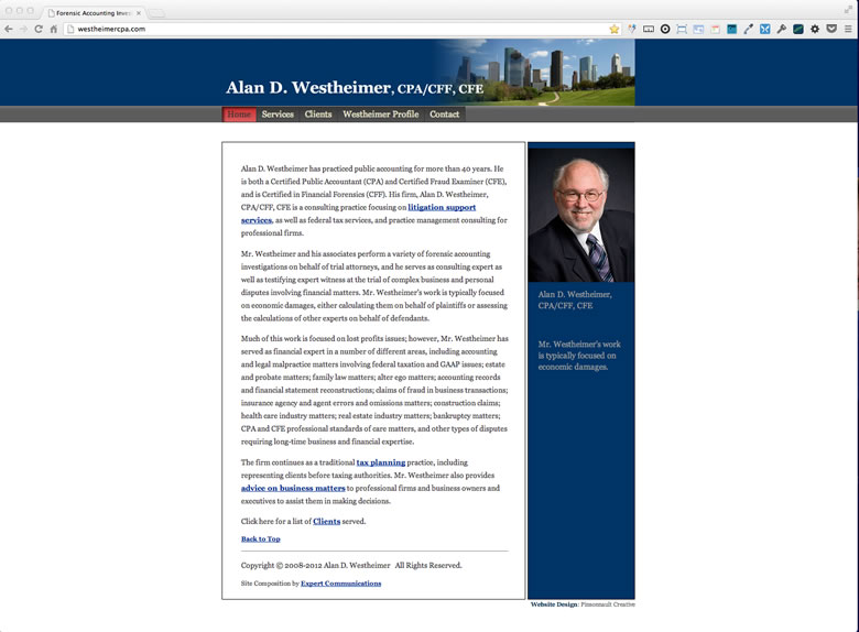 "Thank you so much for your wonderful work on the Web design – some of the feedback we've received: 'Very nice,' 'Easy to get around,' 'Very professional looking,' 'Easy to use,' 'Well organized,' 'Functional,' 'Looks great!' " — Meredith Hamilton, Expert Communications
